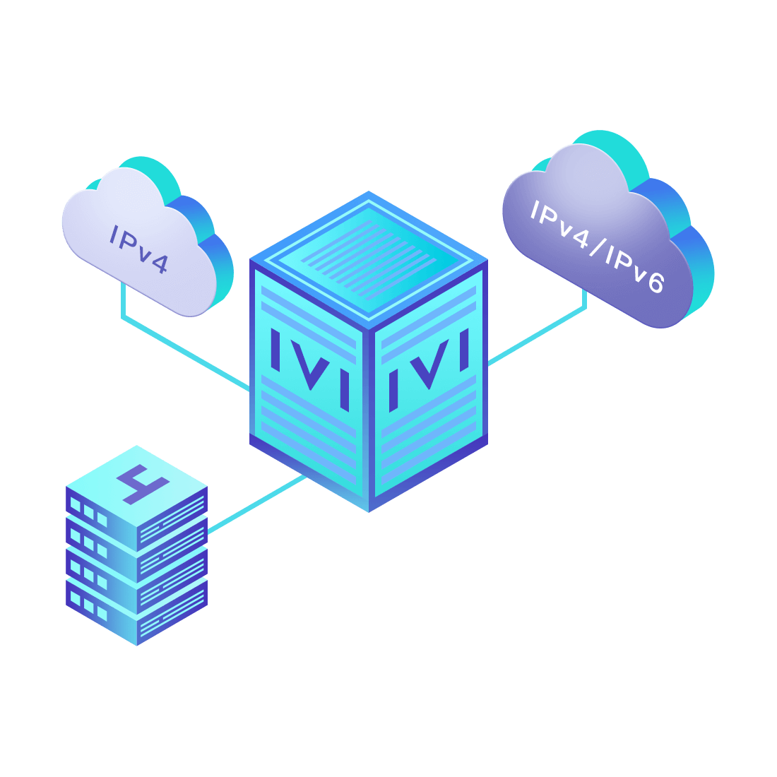 在IPv6演進的過程中,傳統(tǒng)的雙棧技術方案的實施代價很大,需要解決所有三層以上網絡設備,業(yè)務系統(tǒng)、用戶上網管理計費等系統(tǒng)的IPv6全面升級改造問題,而且會帶來巨大的安全風險。我們從安全性、性價比、平滑過渡特性、可擴展性等方面著手,基于IVI無狀態(tài)翻譯技術,為不同過渡階段的不同需求的用戶定制最合適的IPv6升級解決方案。